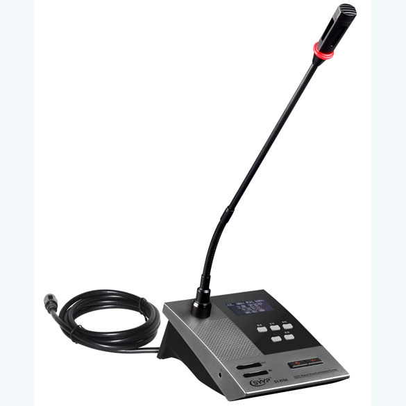 1. 采用全數字集成電路技術,集會議討論、視像跟蹤、電子簽到、投票表決功能于一體。 2. 七種發言模式:先進先出、后進先出、主席專用、限制發言、自由討論、壓倒輪替、申請發言。 3. 七種發言人數:1-6(人可選 )、N(全開放)。 4. 采用輕觸式九鍵控制菜單,并支持中/英文切換等功能;LCD屏顯示工作內容。 5. 自帶防嘯叫功能,開啟移頻功能可以有效地抑制嘯叫、擴展音量,增加拾音距離,保證語音的傳送質量,保真度高,聲音清晰。 6. 通用USB錄音接口,支持熱插拔,可隨意配搭常用電子產品使用。 7.備PC軟件,電腦操作隨意控。主屏/副屏同時顯示表決內容,彰顯會議公開化。 8. RS232端口可外接PC,結合加密型軟件聯動操作,也可連接中控,令會議設備更智能化。 9. 主機可以連接60個會議話筒單元,分四路并聯輸出,每路可連接20個單元,可無限增加電源擴展或數據擴展。 10. 連接狀態不正常時產生鋒嗚,按OK鍵可停止鳴叫;并具有智能斷電記憶功能,可記憶程序運行狀態,若意外斷電后,通電后即恢復最后一次設置。 11. 內置電話偶合器輸入和輸出端口,可用來召開遠程電話會議。 12. 連接視像頭可實現發言實時視像追蹤功能,支持4路攝像頭信號輸入,2路視頻輸出;三種攝像機通訊協議,兼容性強: Pelco_D 、Pelco_P 、VISCA。 電源供應: AC-100-240V 50/60Hz 輸出阻抗: RCA:200歐 LINE:200歐 BALANCE:300歐 UNBALANCE:400歐 輸入阻抗: LINE:50K歐 DIN:50K歐 信噪比: 100dB(1KHz THD1%) 機箱尺寸: 480X360X85MM 附件: 10M 8P 屏蔽線 SY-870A主席單元(下圖) SY-870A主席單元功能參數: 1、智能數字化設計控制電路,功耗低。 2、外置三鍵表決、電子簽到功能。 3、獨特的40CM長管,360度全方位旋轉設計,可拆卸;高保真單指向性電容咪芯,拾音距離遠、聲音還原度好、清晰度高、噪音小。 4、主席單元有優先發言權,可隨時關閉其他列席單元。 5、128X64LCD液晶,顯示單元身份、發言模式、發言狀態、發言時間。 6、優良抗手機干擾能力。 7、無噪音輕觸開關設計,操作靈活; 8、獨有音箱網外觀設計內置揚聲器,可用于會議擴音及播放會議背景音樂。 9、輕觸開關音量控制設計,可調節音量大小。 10、左側設計有3.5音頻輸出,收聽其他列席會議發言內容。 11、會議單元支持熱插拔功能,自帶2.1米8P連接線;手拉手連接模式,安裝簡便,操作靈活。 類型: 電容式 指向性: 單一指向性 頻率響應: 30Hz-18KHz 靈敏度: -43±2db@1KHz 輸入電壓: DC 9V(主機供電) 最小輸入阻抗: 1千歐 新噪比: 68 dB 輸入導線: 2.0M 8P屏蔽線 附件: 防風海綿、2.0M 8P T3M屏蔽線 SY-870B代表單元(下圖) SY-870B代表單元功能參數:
