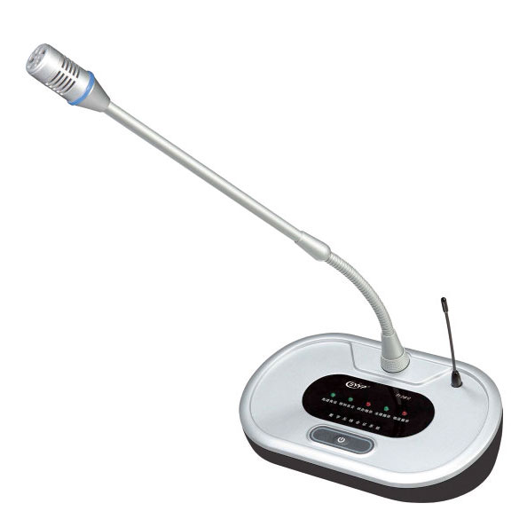 ◆ 討論型數字會議系統單元; ◆ 抗電磁、手機干擾功能; ◆ LED提示發言模式、工作狀態、低壓指示和主席控制按鍵等內容信息; ◆ 主席單元具有優先功能,不受限制功能的限制,可切斷代表發言; ◆ 鵝頸式咪桿設計,咪頭具有燈環指示開機狀態; ◆ 外置發射天線,使信號全方位發射,在有效范圍內不會出現失控狀態; ◆ 使用3*AA 1.5V 電池,即安裝即使用,可連續使用8小時。 ◆ 電源供應:DC 4.5V,AA1.5V*3 ◆ 發射功率:10mW ◆ 拾音咪頭:電容式、單一指向 ◆ 話筒靈敏度:-43±3dB@1KHz ◆ 頻率響應:20-18KHz ◆ 持續使用時長:主席8小時