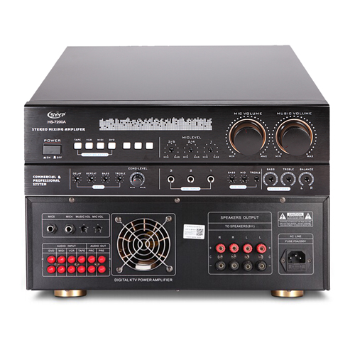 輸出功率 : (8Ω) 2 × 200W 2×250W (4Ω) 2 × 250W 2×400W 頻率范圍 Frequency respone: 20HZ-20KHZ +-0.5dB 信噪比 Signal noise ratio: 82 dB 輸入靈敏度 Input sensitivity: 0.18V 總諧波失真 THD: ≤0.05% 輸入阻抗 Input impendance : 20KΩ 消耗功率 Supply power: 500W 外形尺寸 Machine dimensions: 430×390×145mm 包裝尺寸 Carton size: 490×430×180mm
