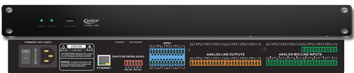 模擬輸入通道:12 模擬輸出通道:8 處理器:ADI SHARC 21489@450 MHz SIMD; DSP處理能力:400 MIPS,1.6 GFLOPS; 采樣率:48 kHz,± 100 ppm; 動態范圍(A/D/A):>107 dB,A加權; THD + 噪音:<-90 dB (22.4 kHz BW,不加權);1 kHz @+18 dBu帶0 dB增益; 內置一進一出的USB聲卡,支持音樂播放、錄制和軟視頻會議(如:ZOOM,騰訊會議,釘釘會議等); 總線式AEC,尾長時間:512ms,收斂率:60dB/S, 回聲消除幅度:60dB; 獨立通道的AFC(反饋抑制),采用陷波式算法,傳聲增益提升幅度:10dB; 噪聲抑制(ANS),信噪比提升18dB 8段英式參量均衡,提供5種濾波器選擇:Parametric,Lowshelf,Highshelf,Lowpass,Highpass; 提供終端用戶訂制操作界面,最大支持30臺設備同一個界面管理; 具有中央控制功能,可對系統中的電源、信號切換、環境控制、音頻等整體控制,實現一鍵開啟系統所需要的功能。